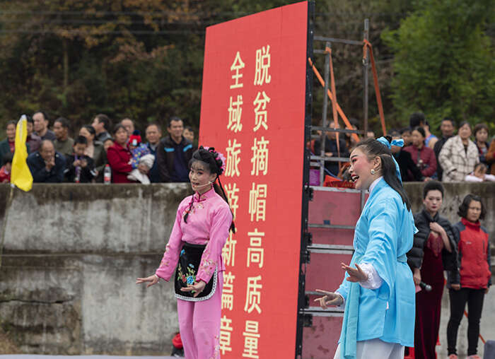 ? ? 開幕式由中共槎水鎮(zhèn)委員會、槎水鎮(zhèn)人民政府,潛山市文化委、市市監(jiān)局、市扶貧辦、市旅發(fā)委主辦?!队质且荒昃栈ㄏ恪贰ⅰ睹利愰端?我的故鄉(xiāng)》、《雛菊花》、《 物華天寶 》等歌、舞、情景劇充分展現(xiàn)槎水鄉(xiāng)村生活風(fēng)情、自然與文化魅力、山區(qū)群眾奮斗在新時代以及經(jīng)濟發(fā)展成就。一個又一個接地氣的節(jié)目,讓觀眾們看了十分過癮,掌聲不斷。