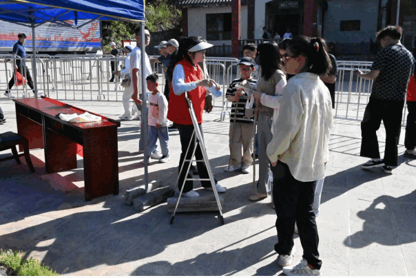 五一小長假,天柱山各級機構主動上山,志愿者在景區(qū)各個地方為游客排憂解難。在大龍窩索道游客中心,游客數(shù)量眾多,人頭攢動。他們穿著志愿者服務的小馬褂,戴著紅色志愿者的服務帽,面對游客提出的各種問題,他們仔細傾聽,耐心解釋,始終保持微笑服務。遇見行動不便和年紀偏大的游客,他們一邊提醒游客注意,一邊主動上前攙扶。